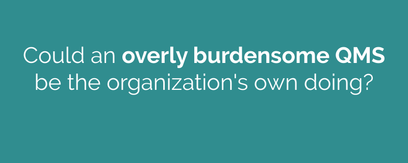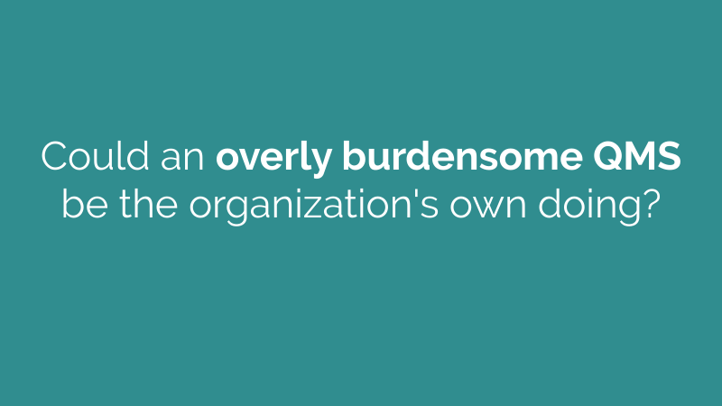 An unnecessarily complex QMS is sometimes a symptom of limited understanding, insufficient knowledge, or a general lack of acceptance of regulatory requirements in the organization. Excessive procedures are also often introduced because the organization lacks confidence that employees will actually follow them. This leads to employees following them even less. Another frequent issue is that operating procedures are developed without input from those who actually perform the work, resulting in processes that do not align with the actual needs.
